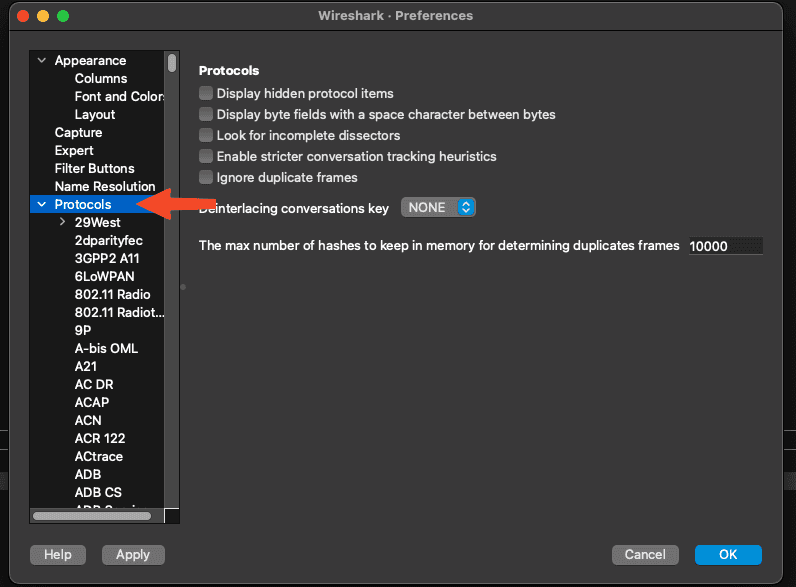 After opening Wireshark, let’s go to the Settings or Preferences menu.
