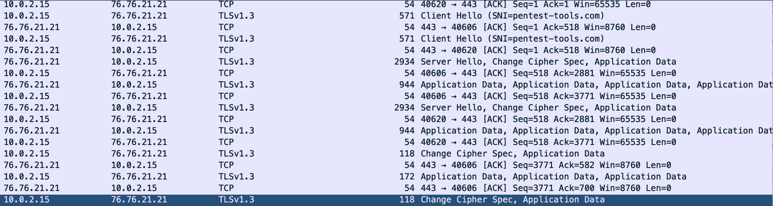 This is how the traffic would look like without using the SSLKEYLOGFILE.